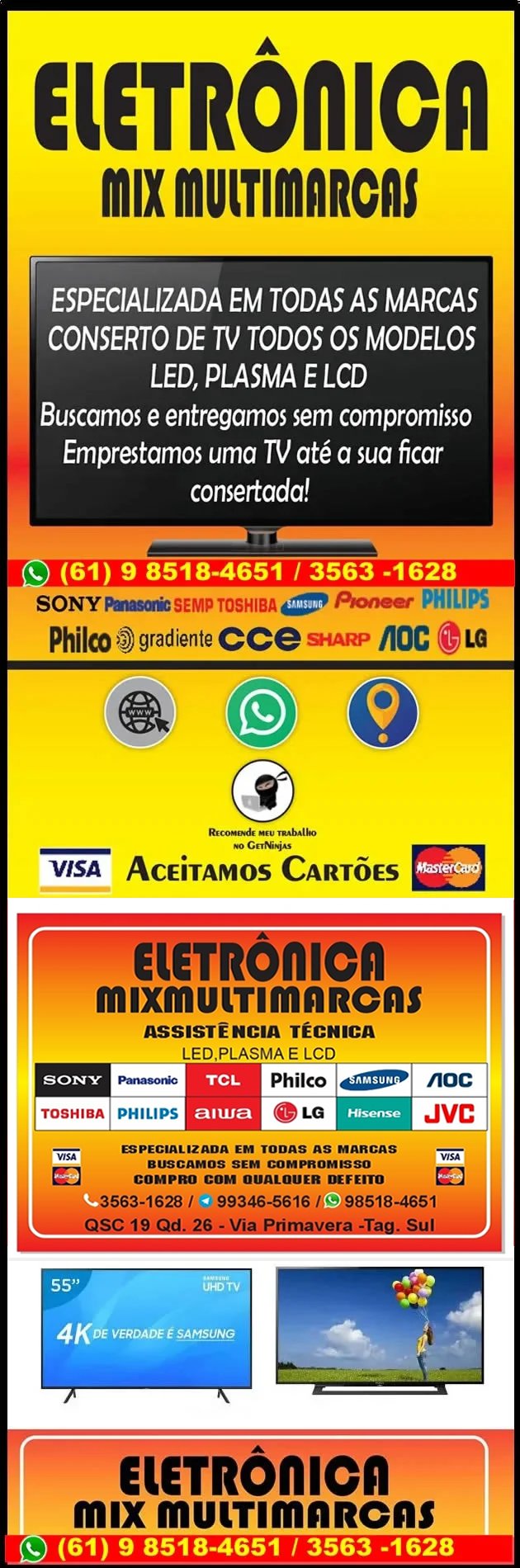 Esta entrada foi publicada em Assistência Técnica, Brasília , Distrito Federal, Eletrodomésticos, Eletrônica , TV e Som, Taguatinga / DF e marcada com a tag Assistência Técnica, Brasília DF, Conserto, Eletrônica, LED, Mix Multimarcas, Plasma, Som, Taguatinga DF, TV. Adicione o link permanente aos seus favoritos.