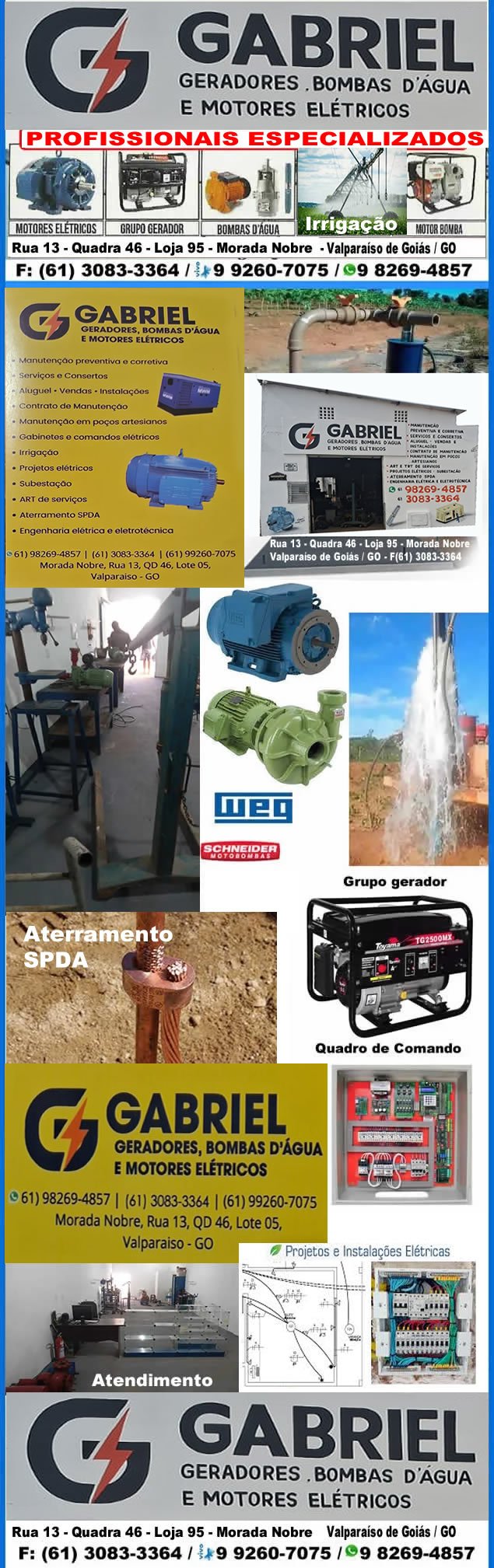 Esta entrada foi publicada em Assistência Técnica, Bombas d`água e Motores Elétricos, Brasília , Distrito Federal, Embobinamento de Motores Elétricos, Filtros de Piscina, Gabriel Bombas e Motores , Assistência Especializada em Bombas D`Agua, Geradores, Jatos de Pressão, Quadro de Comando e marcada com a tag bomba submersa, Comamndos Elétricos, Contrato de Manutenção, Gabriel Bombas, Irrigação, Jato de pressão, Motores Elétricos, Poços Artesianos, Quadro de Comando, Valparaíso de Goiás. Adicione o link permanente aos seus favoritos.