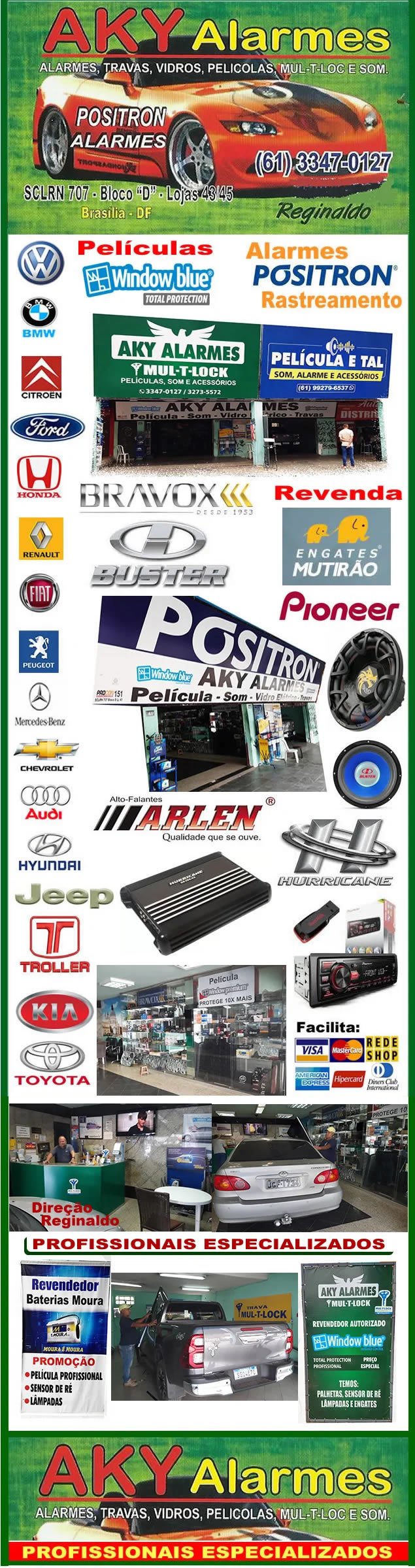 Com a tag Aky Alarmes, Alarmes e Travas, Anti Furto, Asa Norte / Brasília /DF, Engates Mutirão, Instalação de Películas WindowBlue, Instalação de Som, Positrom, Rastreadores